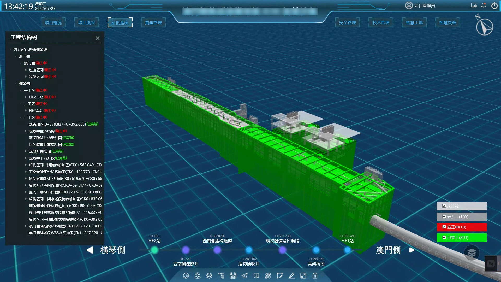 跨境輕軌項目起于澳門境內(nèi)HE1站(高架站),向西下穿十字門水道,在橫琴口岸旅檢大樓下設(shè)HE2站(地下站),是澳門特區(qū)政府近年來重點推動的兩岸互聯(lián)互通大型公共交通工程之一,也是澳門首個采用大直徑盾構(gòu)工藝施工的海底隧道工程。