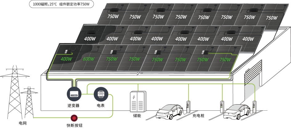 1、在無遮陰情況下,僅安裝智能關斷器,可保證整個光伏系統(tǒng)的安全。