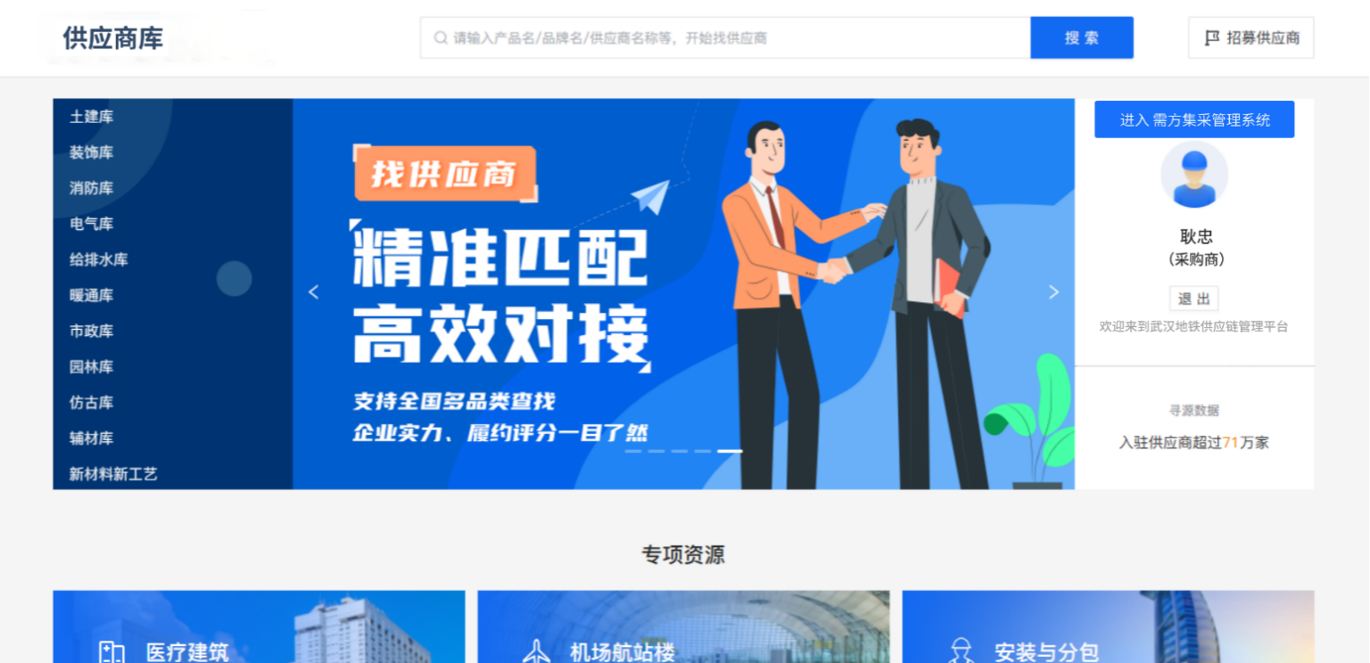 內(nèi)部工作人員管理門戶網(wǎng)站運營的管理后臺,通過該套系統(tǒng)完成武漢地鐵集團供應(yīng)鏈管理平臺門戶網(wǎng)站中優(yōu)選商城、自建品牌銷售、供應(yīng)商管理、品質(zhì)管控及聯(lián)采集采招投標(biāo)等的日常運營工作,保證門戶網(wǎng)站的正常運行。