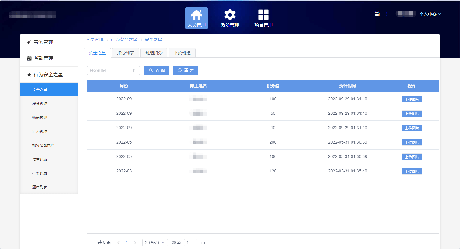 查看個(gè)人/班組積分排名情況,積分獲取時(shí)間以及事由,積分變動(dòng)細(xì)明記錄。分析班組得分情況。