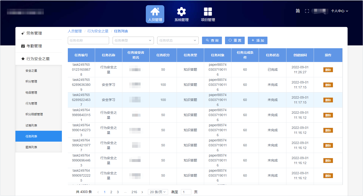針對項(xiàng)目情況可進(jìn)行安全任務(wù)派發(fā),安全任務(wù)類型可分為安全知識閱讀以及安全知識問答,任務(wù)完成條件等要求設(shè)置。
