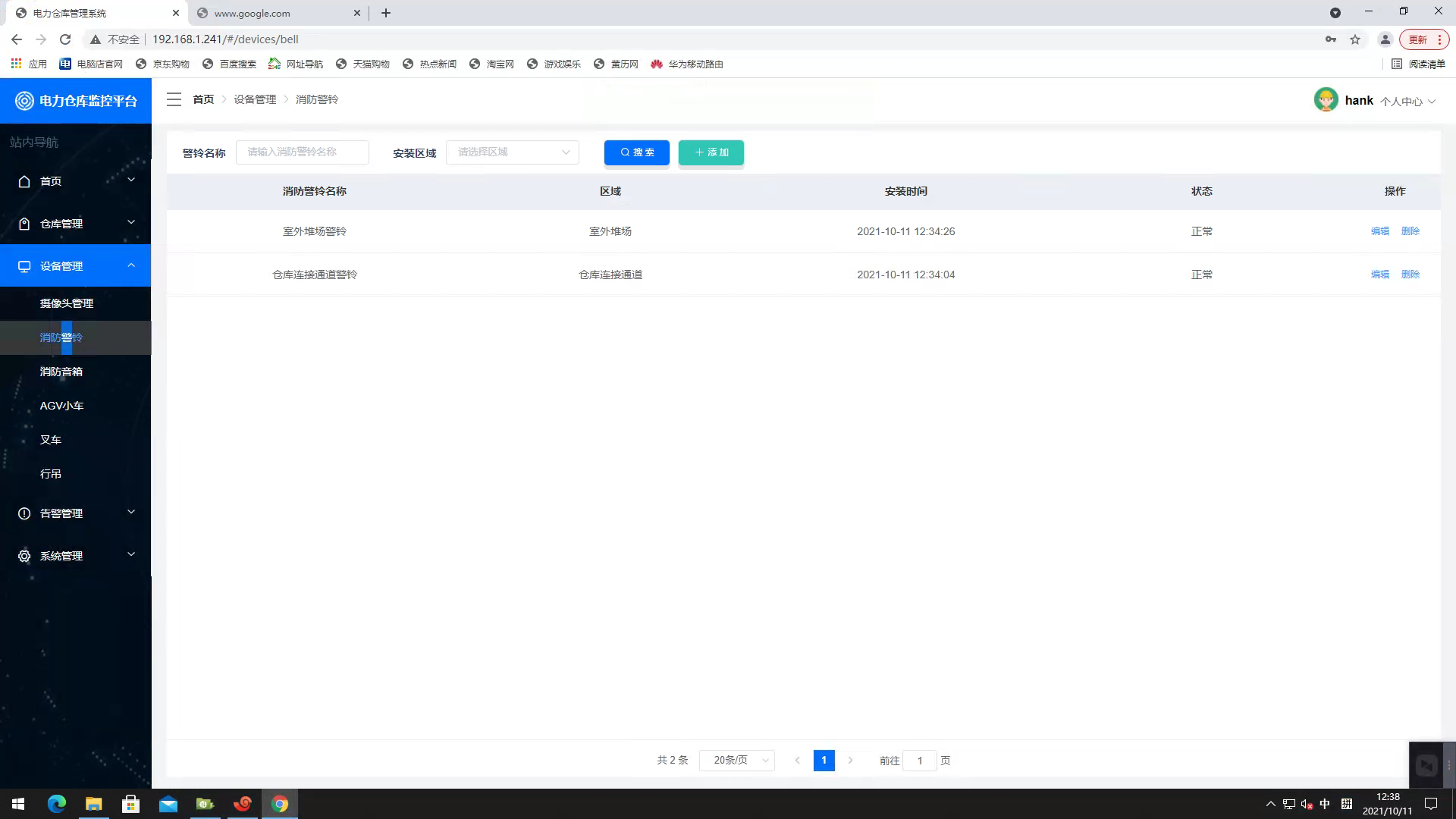 管理配置項(xiàng)目?jī)?nèi)所有硬件設(shè)備,可進(jìn)行叉車(chē)、行吊、攝像頭、消防警鈴等設(shè)備添加、查看、修改、刪除等操作。對(duì)設(shè)備進(jìn)行區(qū)域劃分,關(guān)聯(lián)設(shè)備與區(qū)域之間關(guān)系。